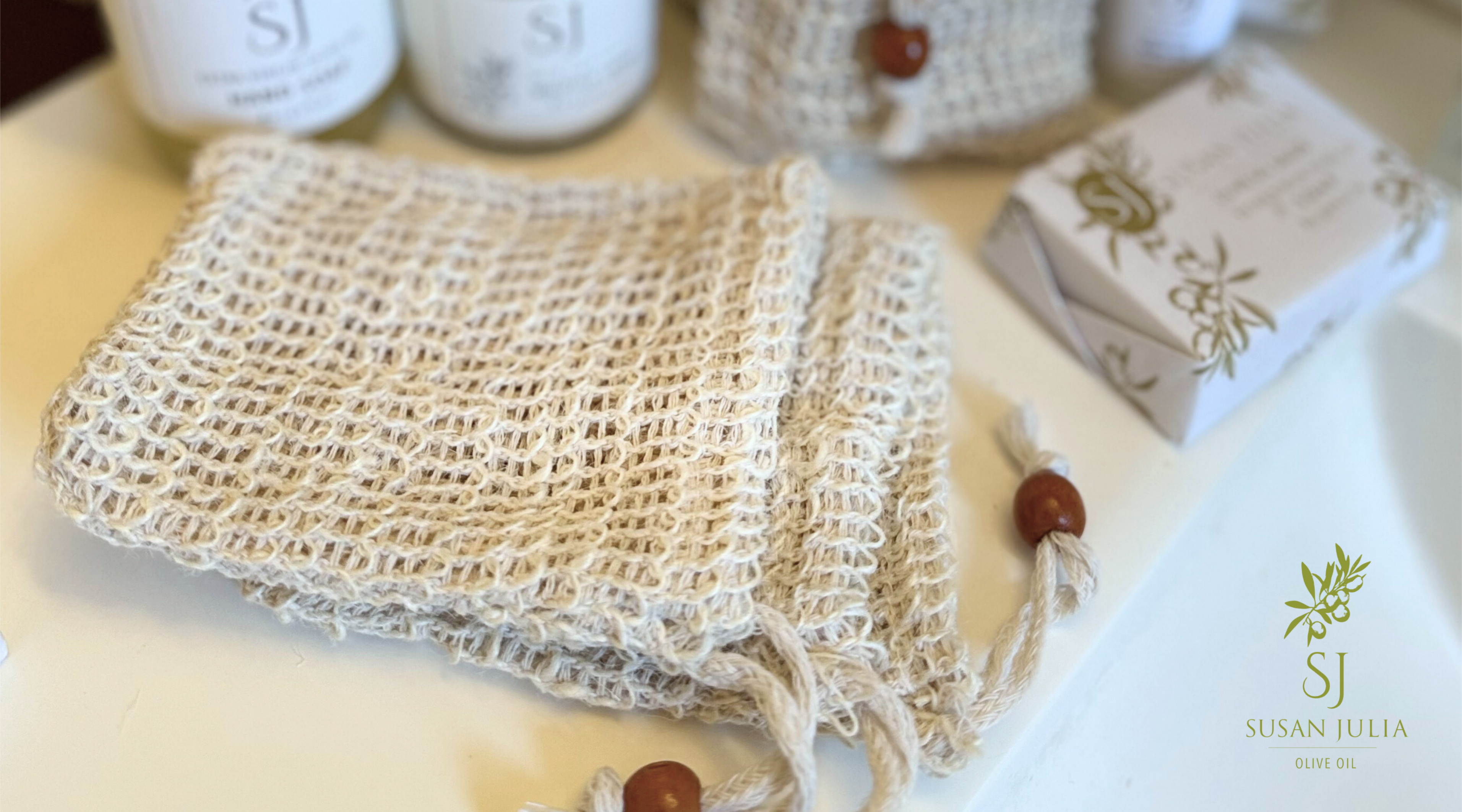 Autumn beauty starts with exfoliation. Our eco-friendly sisal soap pouch gently polishes and buffs away dryness, revealing fresh, renewed, glowing skin—the perfect addition to your Fall beauty ritual. Receive a complimentary exfoliating sisal pouch with any order.